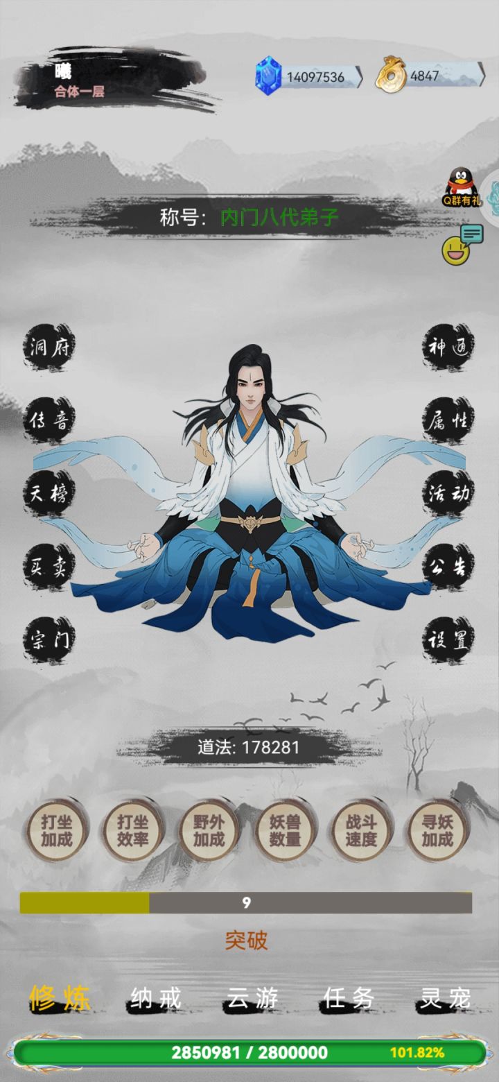 ②宗门任务,有十次,尽量全部做完。(这可比打怪获得的经验升级来的快哦。)