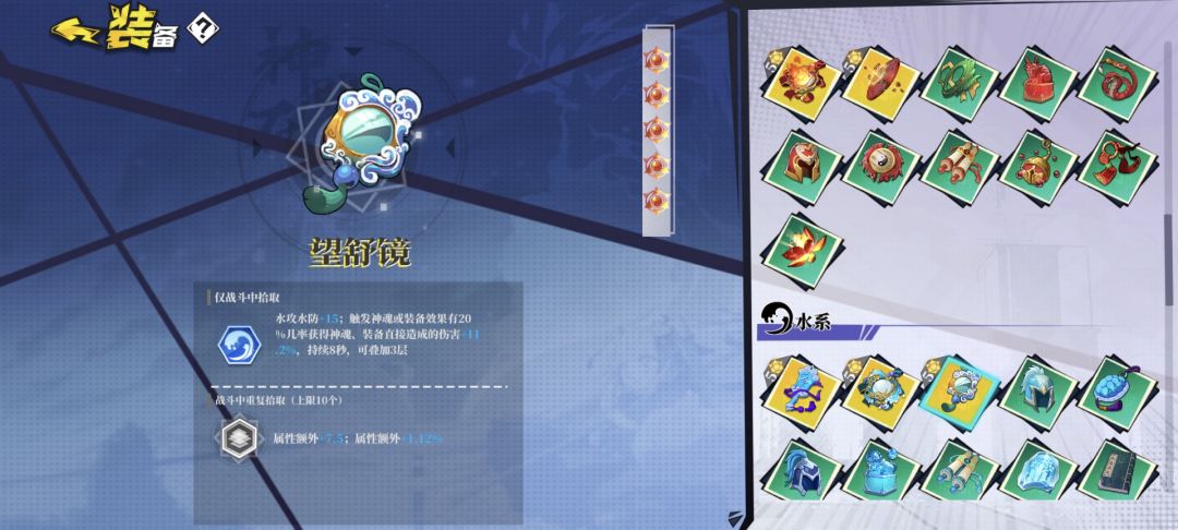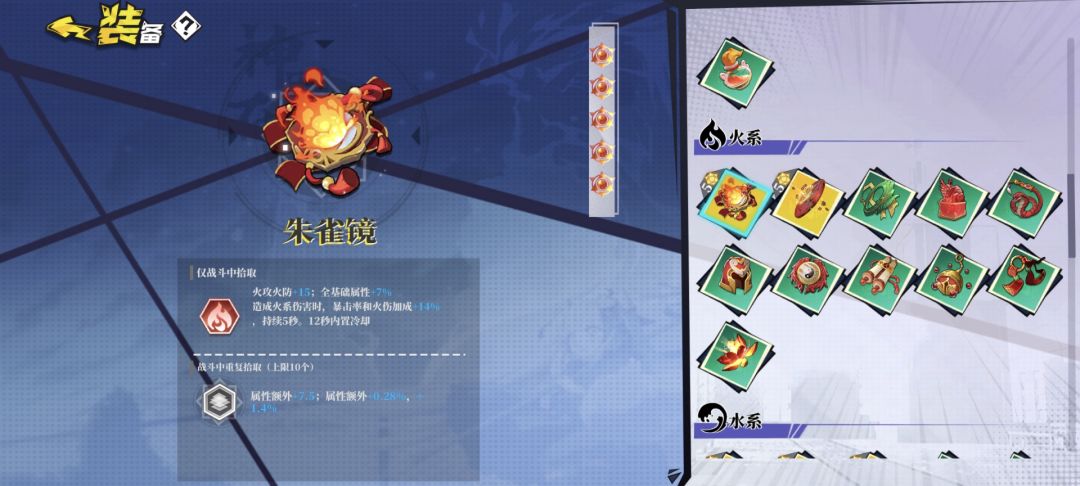 水,火,风三镜子,通过增益玉的延长,可以稳定提供,暴击,爆伤以及冷却缩短的buff。