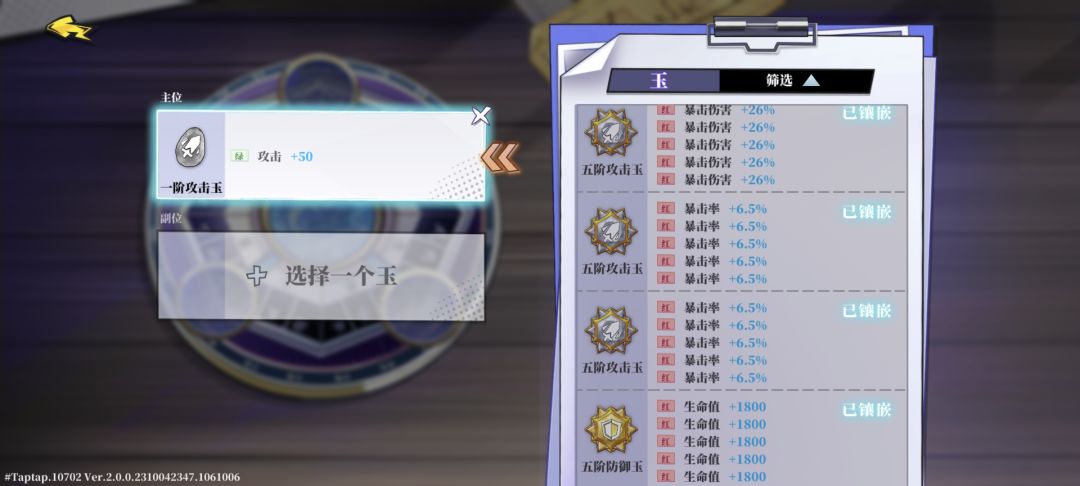 微氪或者白嫖党:3四红暴击,1四红增益,1三红爆伤+红色增益,1生命值。