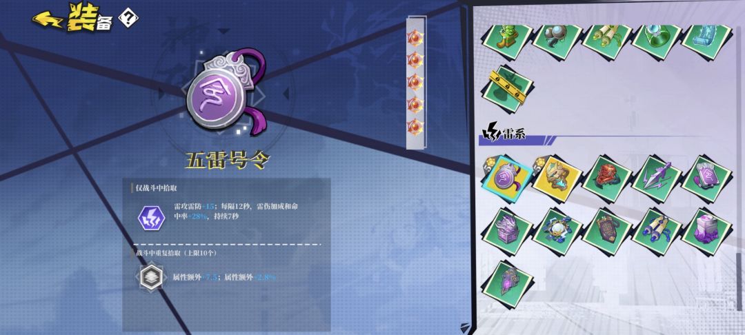 五雷号令:雷系残影,提供命中率,并且稳定保证羽毛叠满5层,不会掉落。