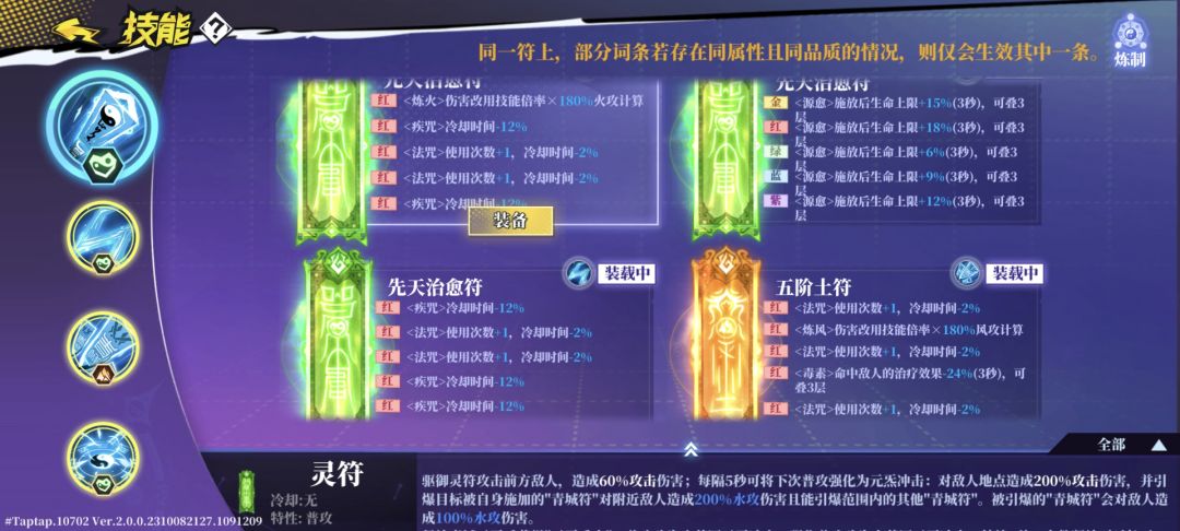 2技能:2疾咒+法咒+1炼风+1先机,我2技能的符相对而言是比较失败的,毒素的性价比远不如先机。