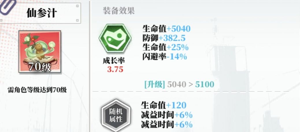 仙参汁,愈伤核心装备,25%生命值的比例提升,不可替代。