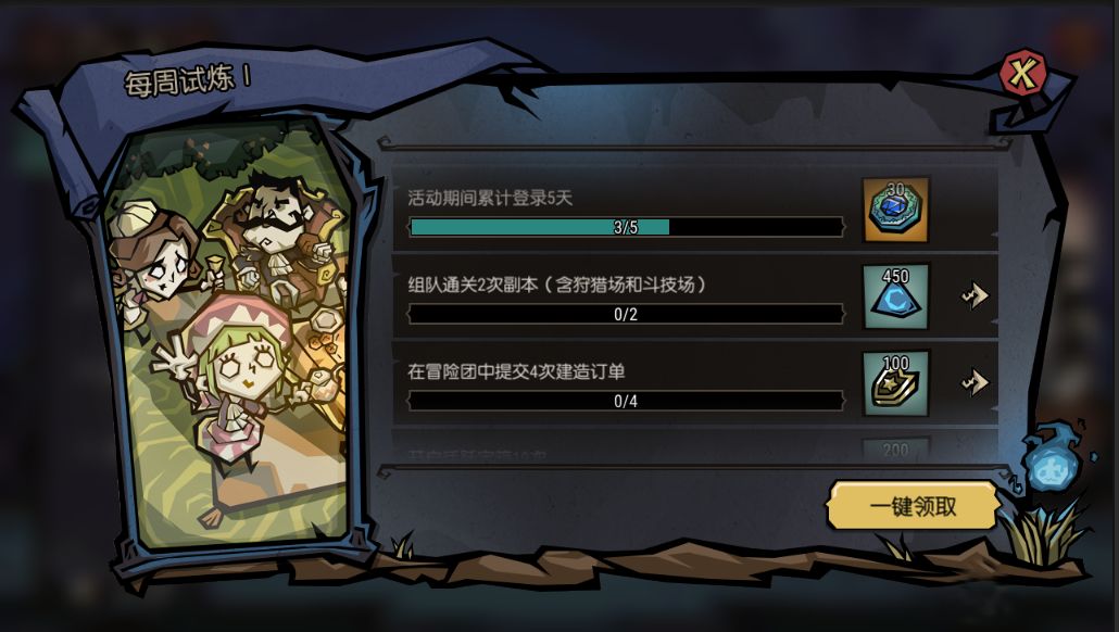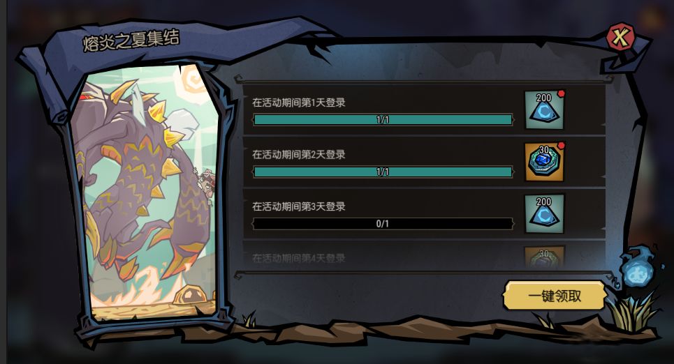 保持活跃度,每到一个进程可领取惊喜宝箱!活动期间,为了感谢各位冒险家的陪伴,宝箱刷新时的紫色及金色品质宝箱出现的概率将会有所上调哦!