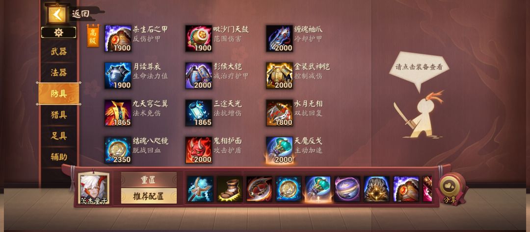 大后期根据情况补杀生石(ad)三途(ap)面具(高爆发)三日月(输出)
