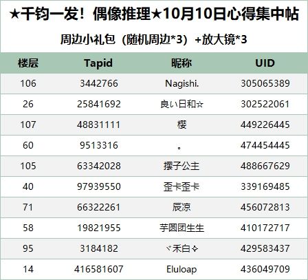 本贴回复期限为10月10日 00:00-23:59,未在规定时间内回复将无法参与本日获奖统计哦!