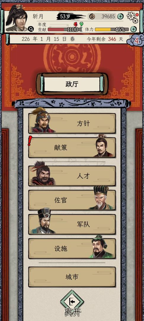 首先确定方针,兵力快满了就直接去打,然后城市设施优先级是最高的,钱不够就从其他城市调配,没有设施就不能提升城市规模和兵力上限,指派的建造武将切换城市之后有没有影响不太清楚,反正系统没有提示默认无影响。