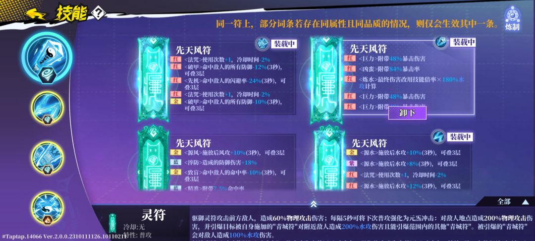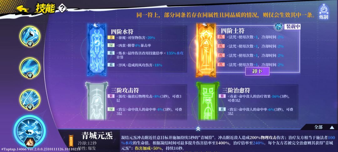 低配版:1练水1双咒---毕业符:1练水1凶蛮2巨力1双咒