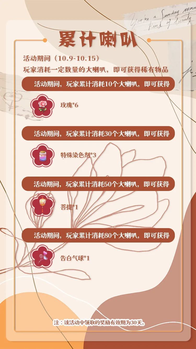 乐宝给你送奖励。参与浪漫10月活动,轻奢饰品、限定道具你都可以拥有,还是免费的哟~