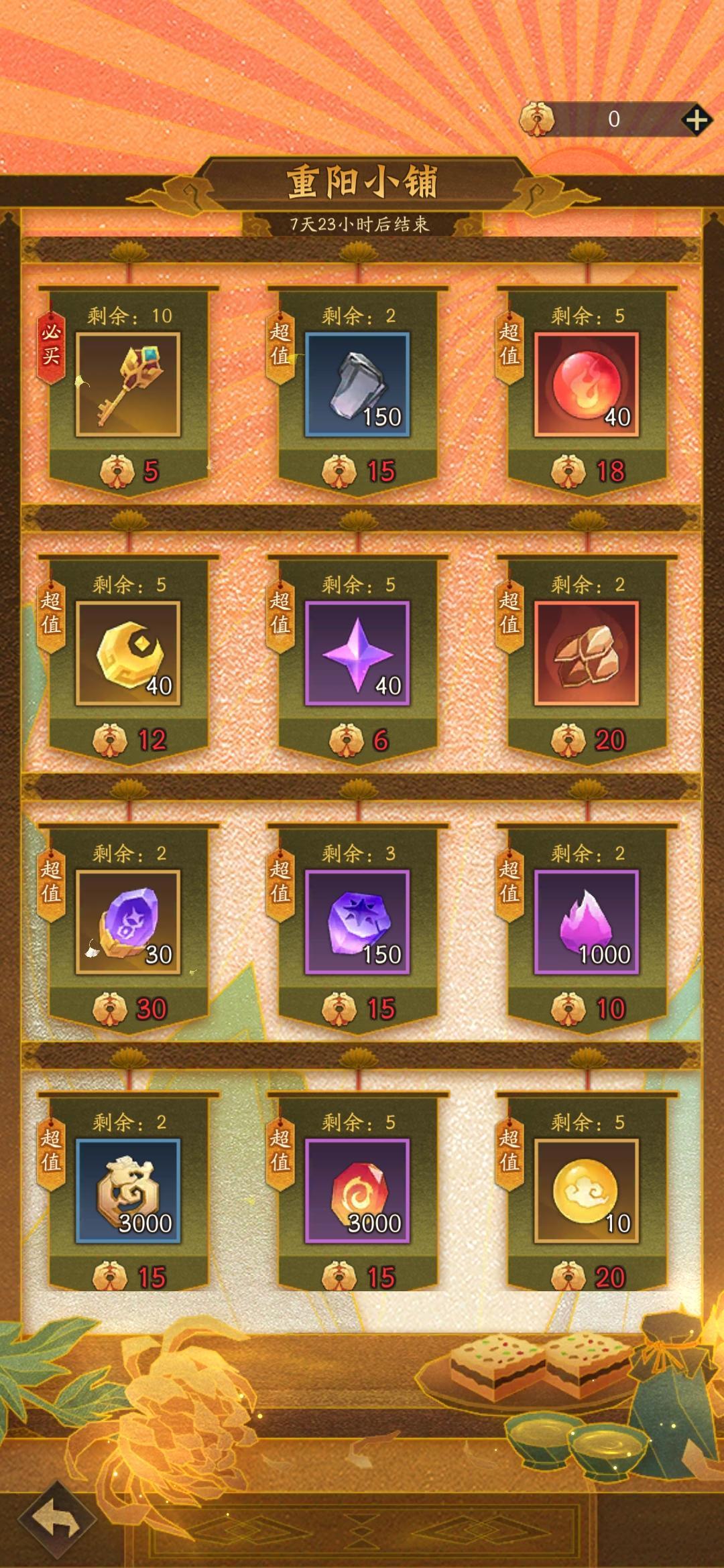 活动期间,道友可消耗重阳有礼活动中获得的重阳币兑换宝匣秘钥、百年玄铁、灵石、天相材料等珍稀资源!