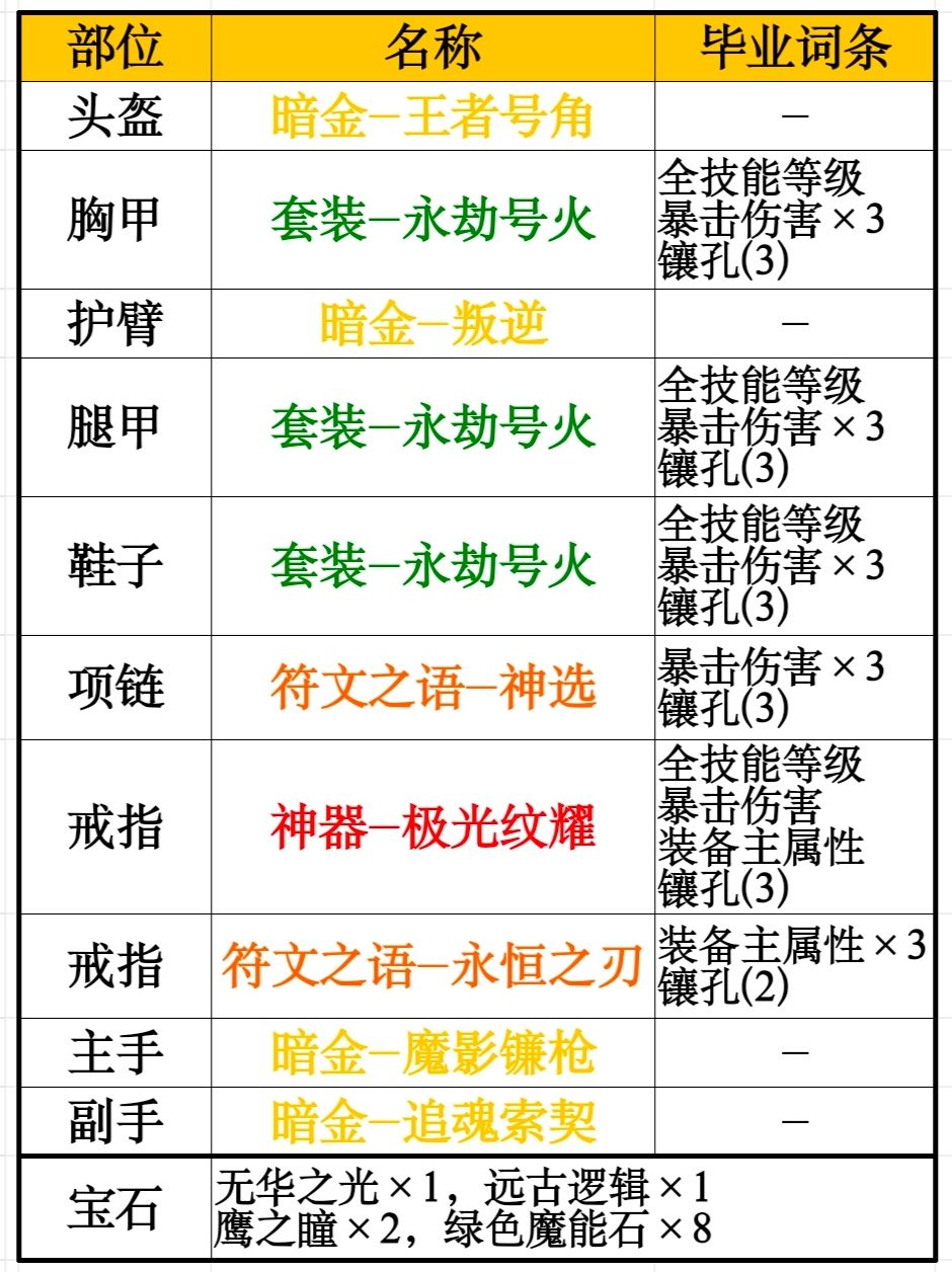词条方面,需要补充全技能等级+8,其余全部推荐暴伤和镶孔。