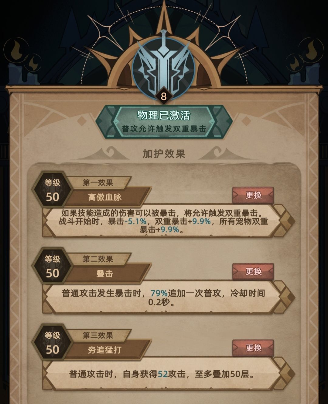 选择物理塔,技能高傲血脉、叠击、穷追猛打。