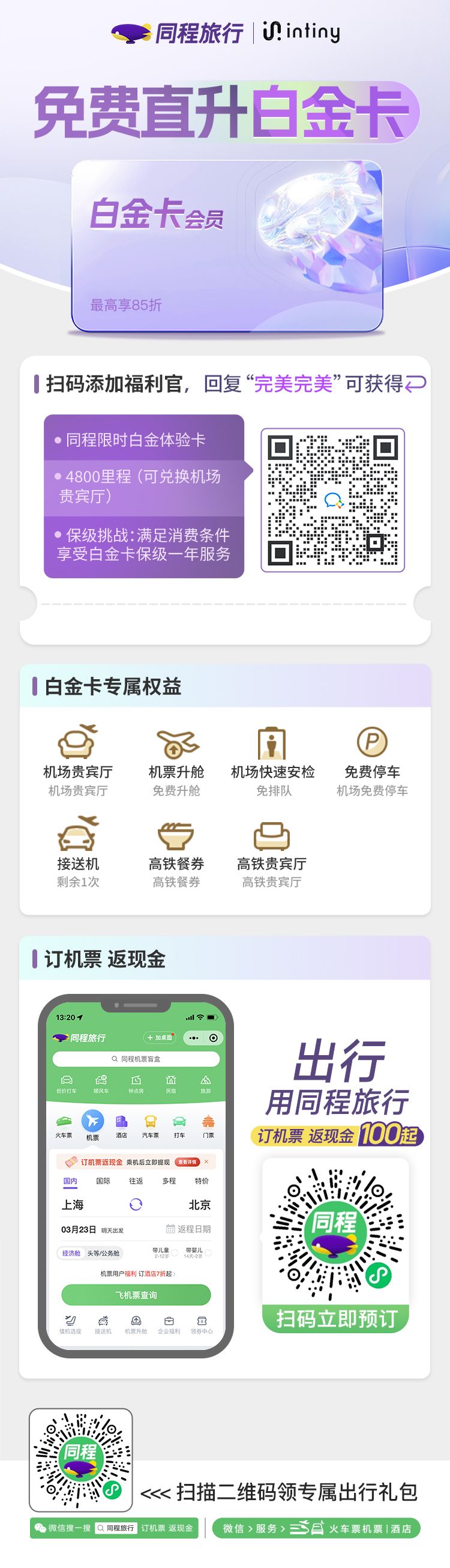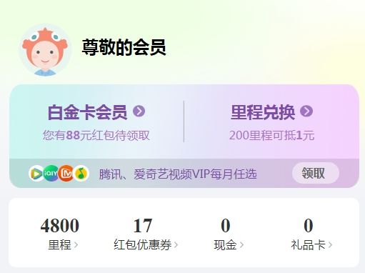 1)同程旅行3个月白金会员体验卡;