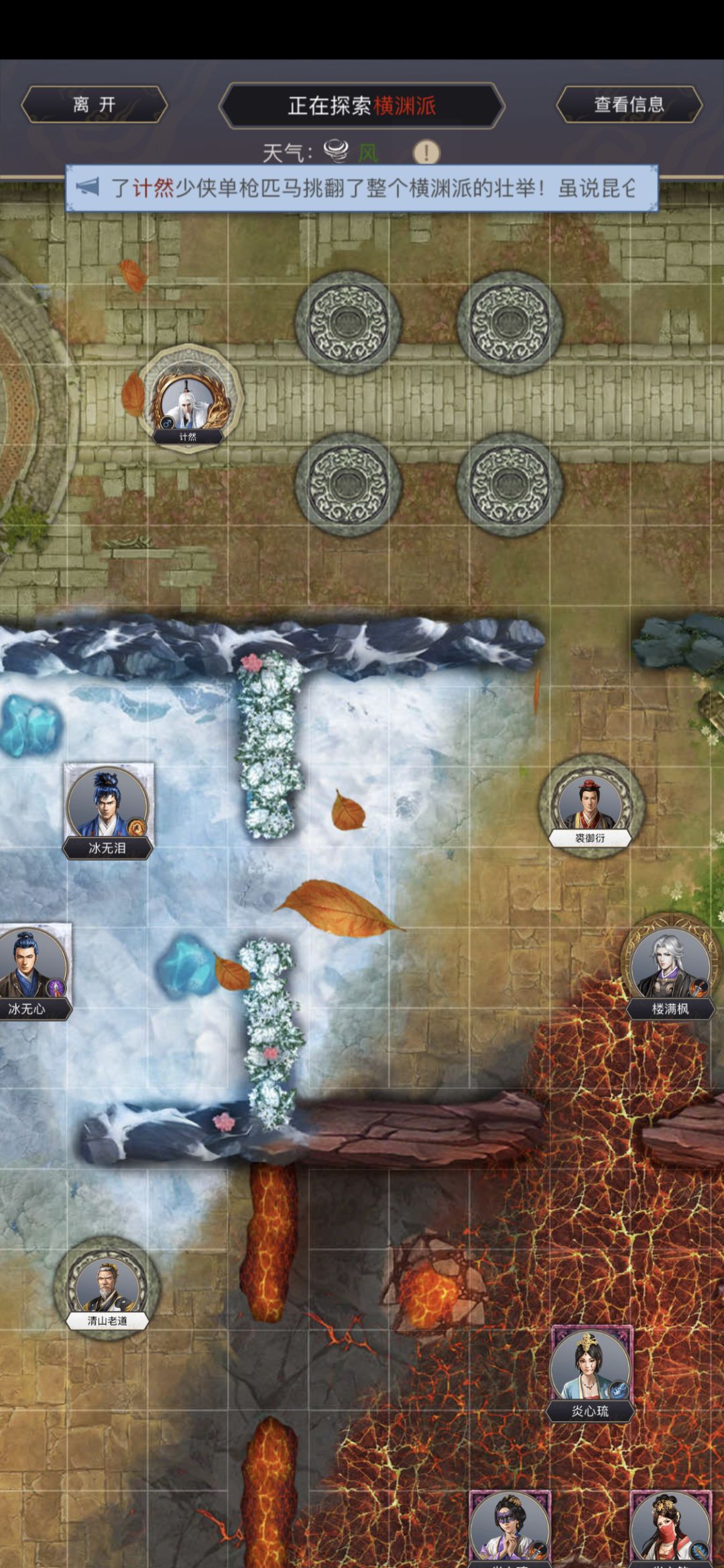 八、横渊派地图分析:(除第三区域楼满枫选雷天,其余皆风天过图最佳)