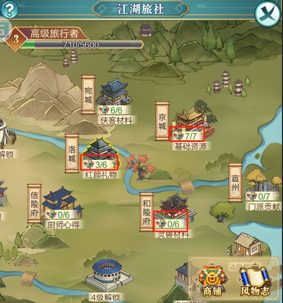 *小技巧:每天旅行次数有限制,提升藏宝图的品阶可增加获得普通奖励的数量和稀有道具的掉落概率。