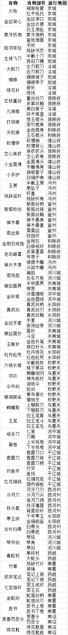 大侠可以对照上表查漏补缺,同时还可以根据地图地标下面的奇物数量还确认城镇奇物是否已经收集全。