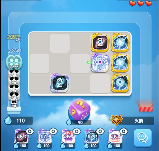 就像下图一样,前期的主要还是需要用蒲公英来生成新骰子,如果蒲公英的数量过少,黑洞基本上没有吃的机会,所以我们尽量要提升一下黑洞或者是光祁的骰子等级,等级越高前期的伤害也就越高,如果玩家没有九级觉醒黑洞,没有觉醒光祁的话,不建议玩黑洞,不然你会发现根本不需要对手骚扰,你自己都打不动小怪。
