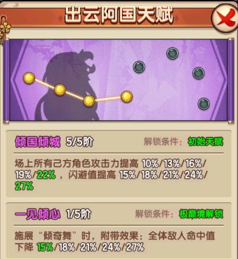 2、游戏第二大特点:一般来说同样资源平均分给5名侠客是打不过集中分给1位主C侠客的;只有当主C赏赐满了,再考虑把部分资源分给其余4名侠客,这种机制也促生了玩家大多走1主C4辅助(挂件)的流派。前中期适合当主C的有宋玉清、曹凌、月半画眉(大雕)、沈小虎、宫本武藏、谷美玲(V5),培养主C就是把几乎所有资源都给他就可以了。
