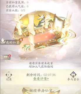 即在仙宴活动中百花宴(黄色)设置只收取随礼·醉仙酿(红色)。