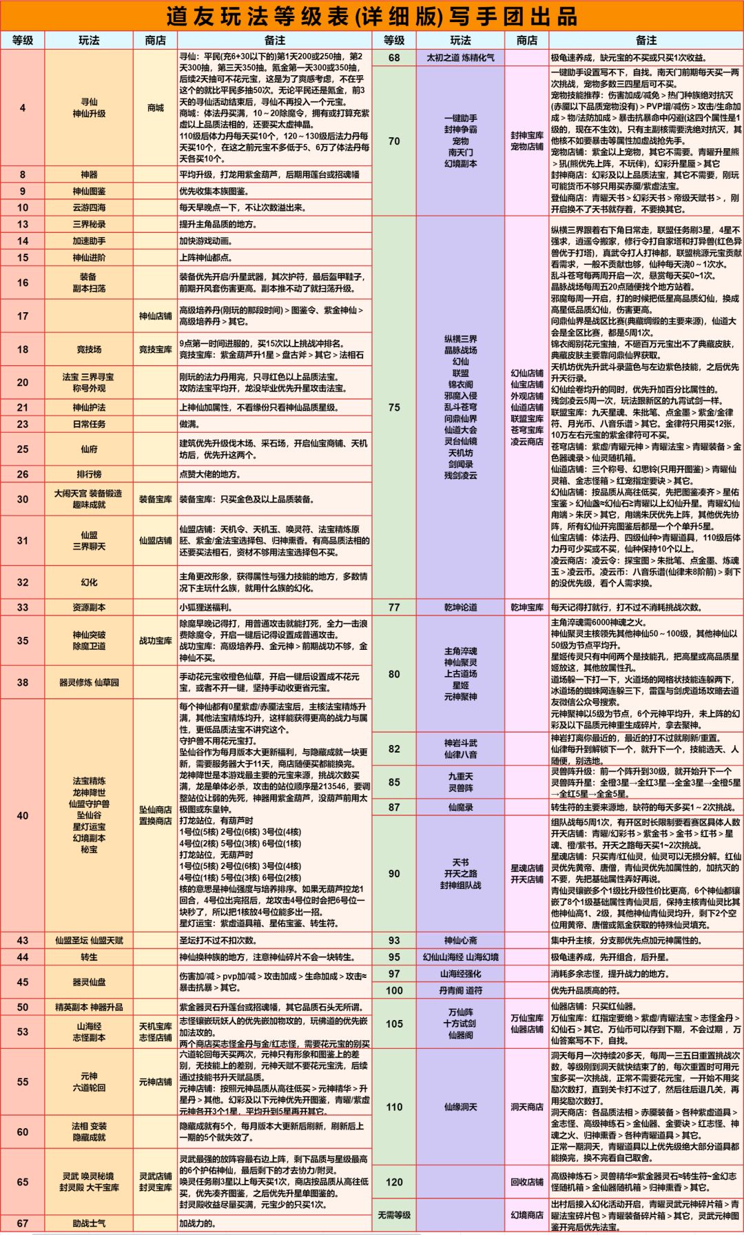 堪称基础攻略大全的玩法等级表翻新了