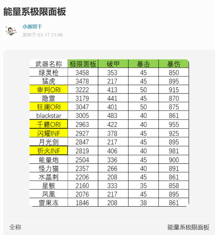 ②,《能量系极限面板》的狂澜ORI(妖炽ORI专武)相关数值未录入