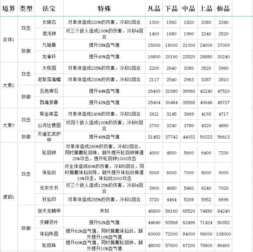 以上是目前收集到的法宝信息,并不是全部,各位道友要是有不在图鉴中的法宝,可以在帖子下留言,或者加qq群(694216598)分享到群里。大家可以加一下群,大佬有空都会带人,有什么问题都会解答。