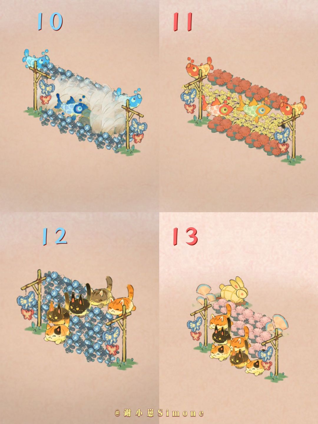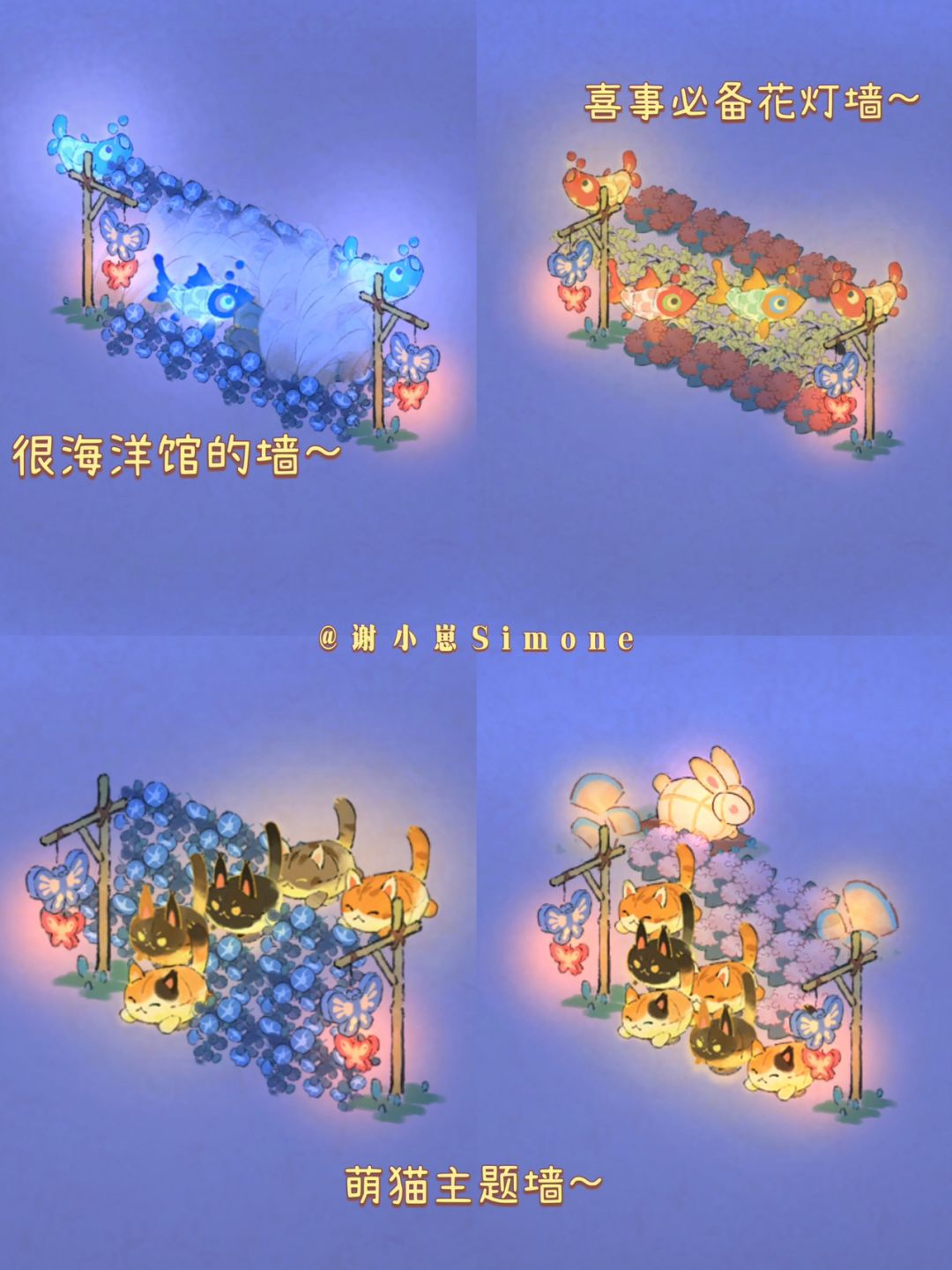 花灯架的用法:1⃣️如图所示在道路两边;2⃣️单个架子当作门;3⃣️放至生产娱乐建筑周边增加灯会氛围(如上篇「桃源商行」生产建筑);4⃣️随便摆,亮晶晶,美美哒。