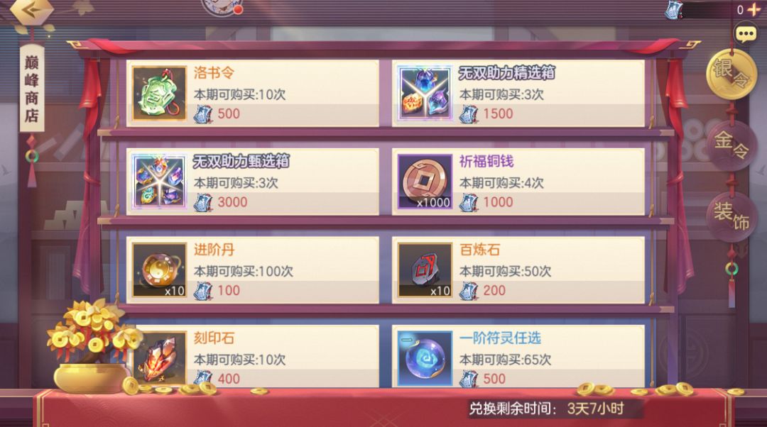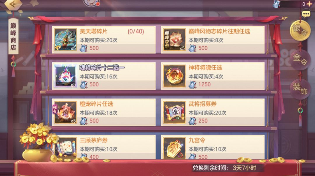 兑换所有奖励是159000银令,如果参与过前三期的老玩家只需要135000银令