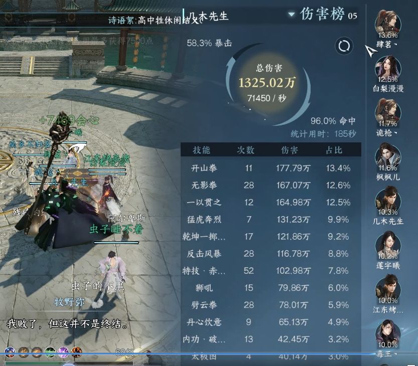 且一个人全程太极图,而不是在打老六途中的秒伤截图。