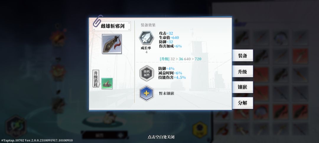 打完所有怪物,退出后,消耗2体力,装备结算:6