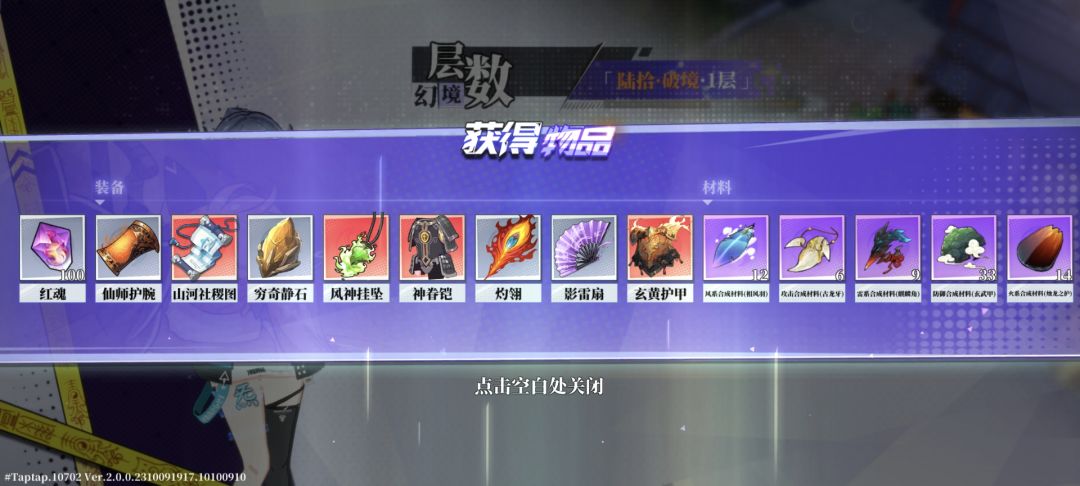 并且刷完两层,只需要消耗2体力,便可以得到成堆的装备!