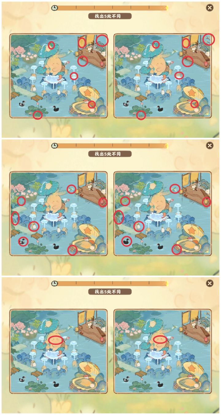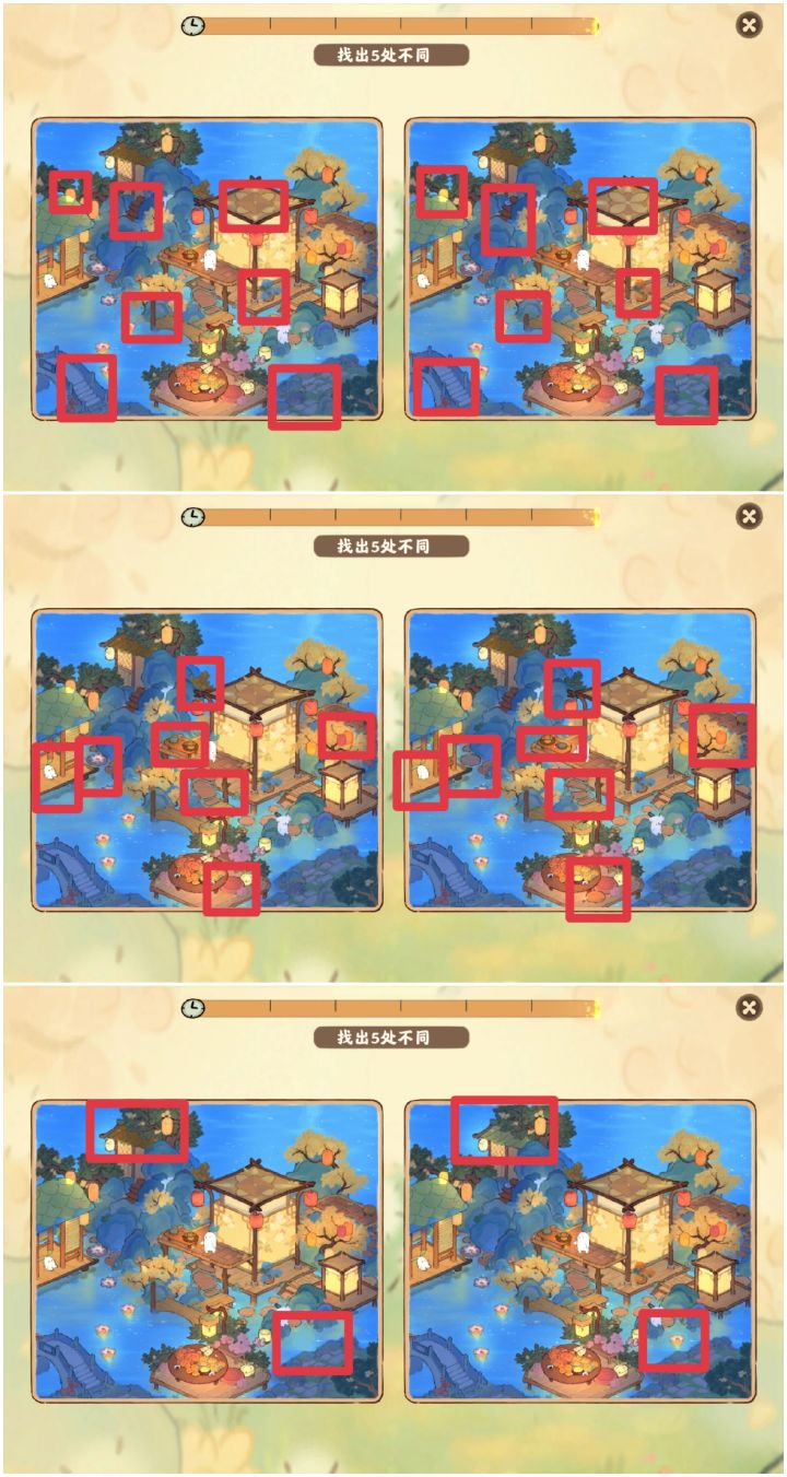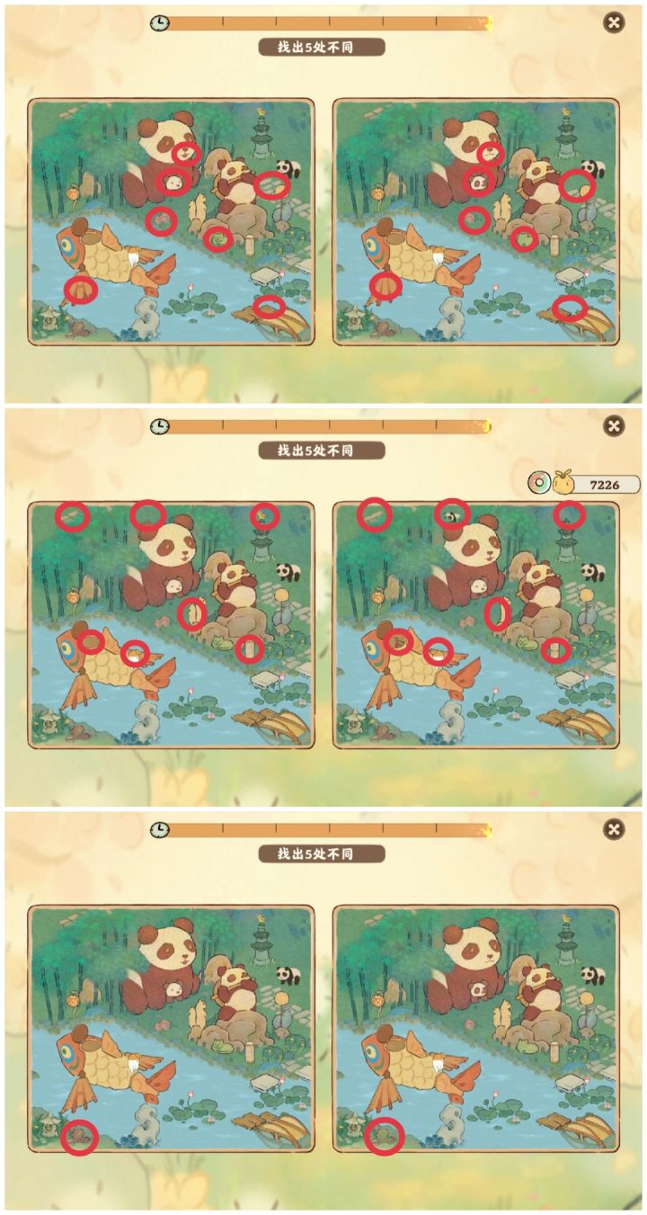 还是老规矩,所有不同随机出现,每张图7个,找到5个即可。在第二个刻度走完前结算就能1000分。