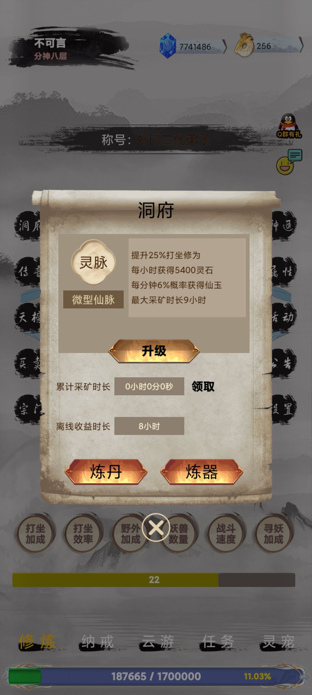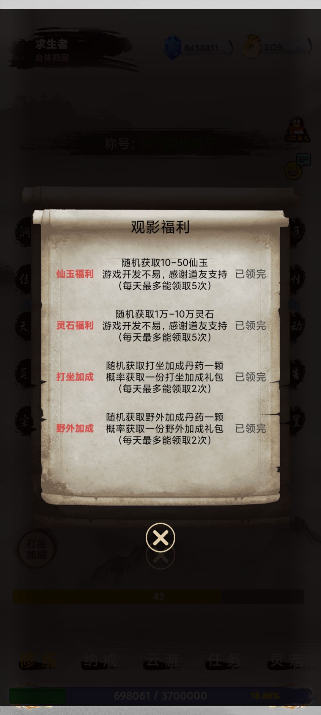 ①获得仙玉后,先不要进入商店,等进入巩基期时升级洞府,有多少仙玉就升多少,洞府升满之后加百分百的经验,比不升洞府的人多一倍的经验。