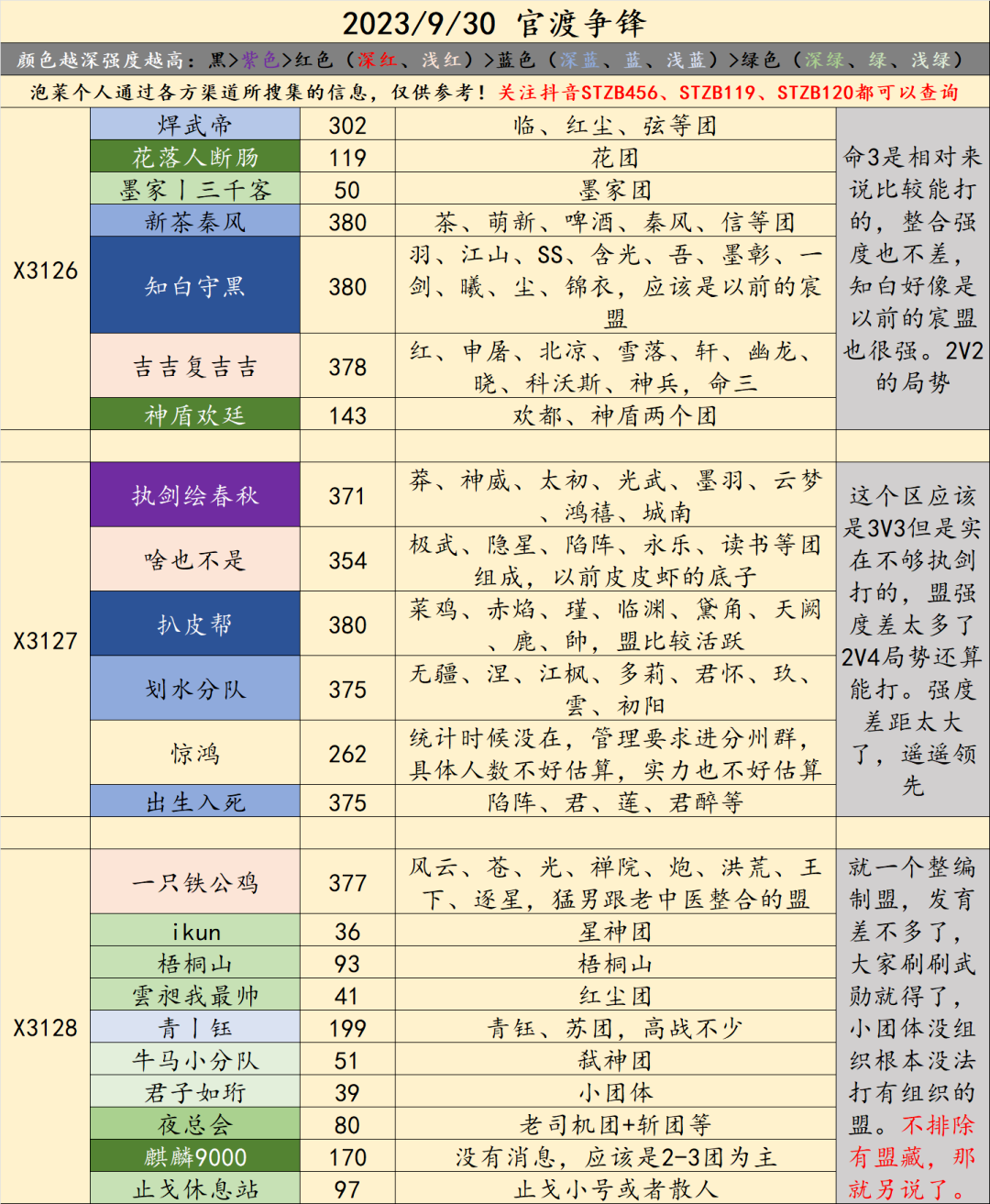 注:本文情报主要来源于部分相关知情人士,信息涉及面广,同盟和人数繁多,难免会有疏漏,欢迎各位主公指正和补充,同时感谢各路辛勤的记录者、史官们!