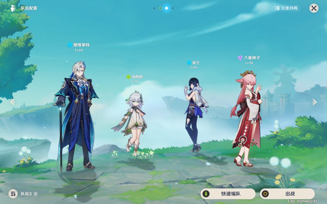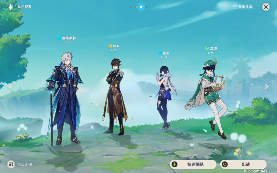 0命配队:那维莱特+盾辅+水辅+扩散风/其他后台挂元素角色