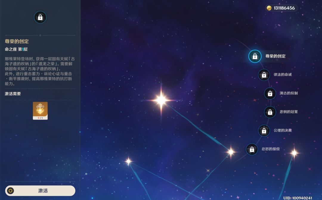 命座:1,2,4,6都有用,但是没有很质变的命座(不排除出了水神,这边1命质变了),所以抽到0命的那维莱特,专武比补命更有用,有了专武后,命座这边可以升到1或2,会增强那维莱特的抗打断能力以及暴伤。4是额外产生源水,6是重击增伤。