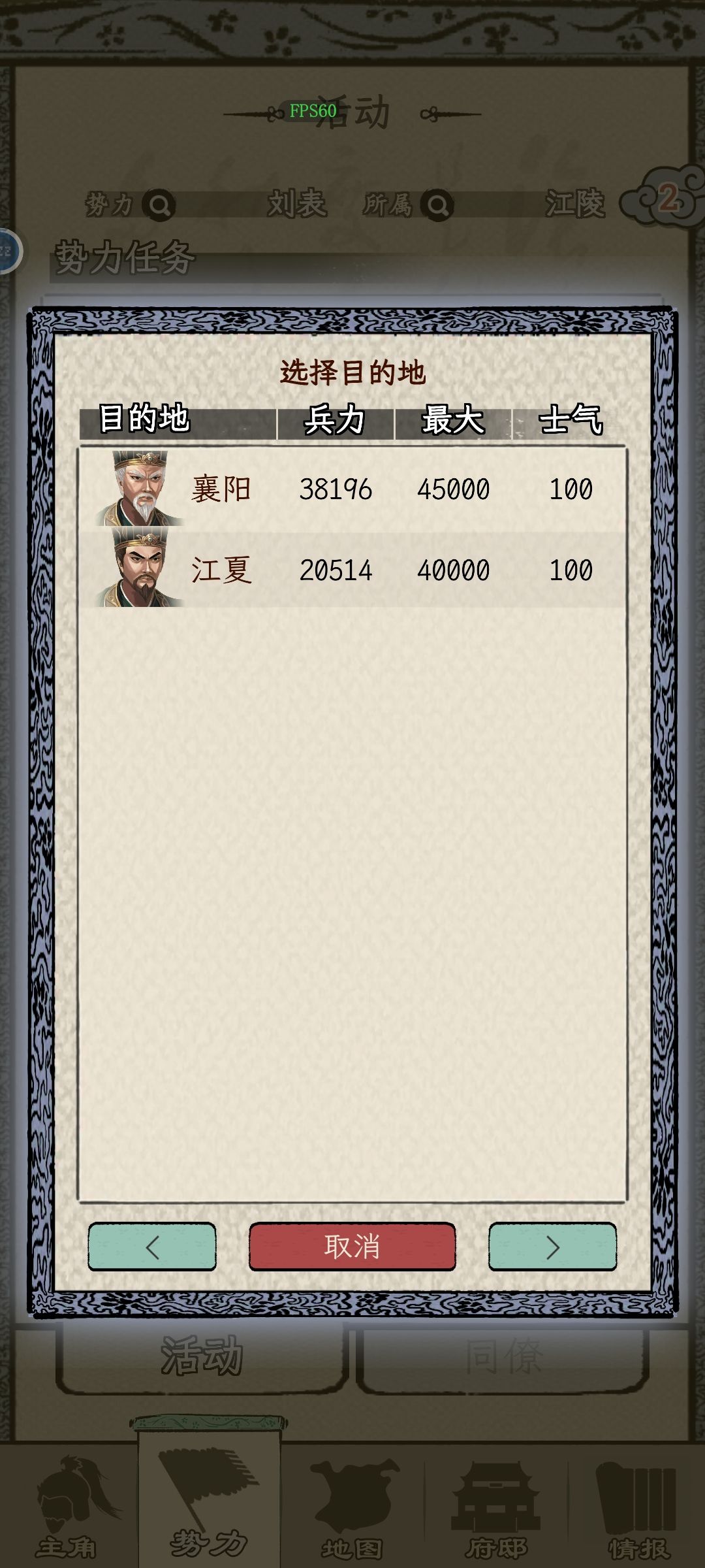 4、利用好内政的降低敌方士气,可以让战斗更加轻松。同时你的部队距离征战城池太远,也会损失大量士气。