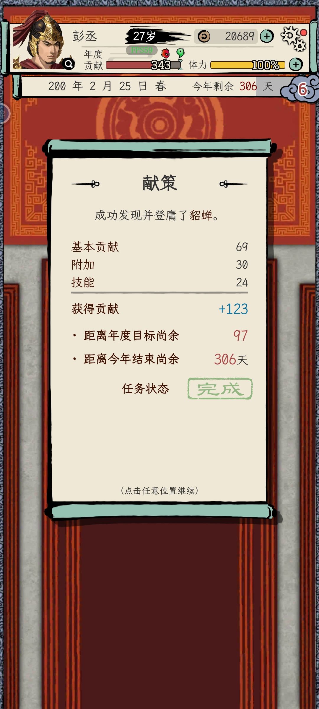 (4)贡献点:根据你的官职,每年有贡献点要求,达到目标不记过,达到立功要求记一次功。升官后会清空立功和记过记录。