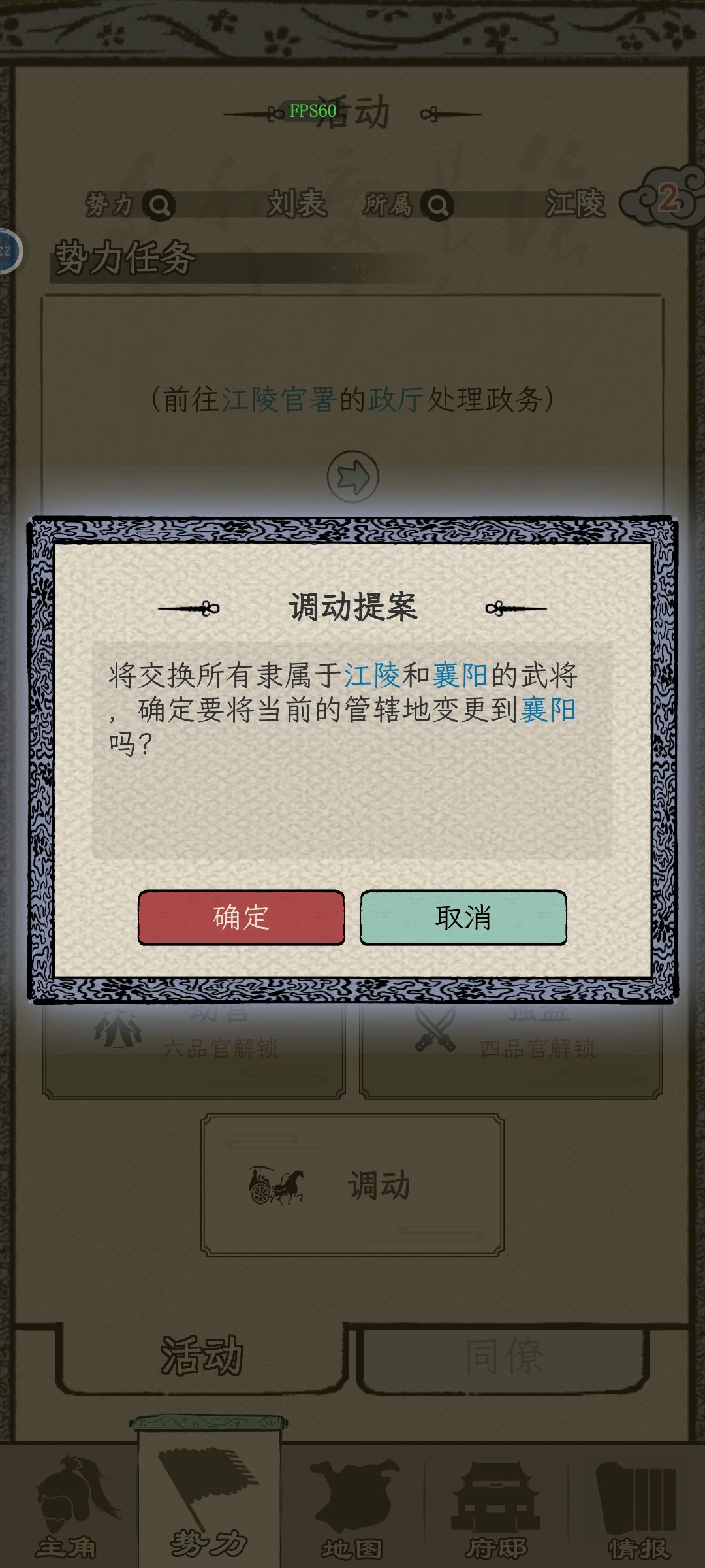 连续征战后,主要城池的兵力需要恢复怎么办?可以分治到小城市,然后调任选择主公的大城市。几回合下来把老板搭配边疆小城养老,自己手握大城重镇。