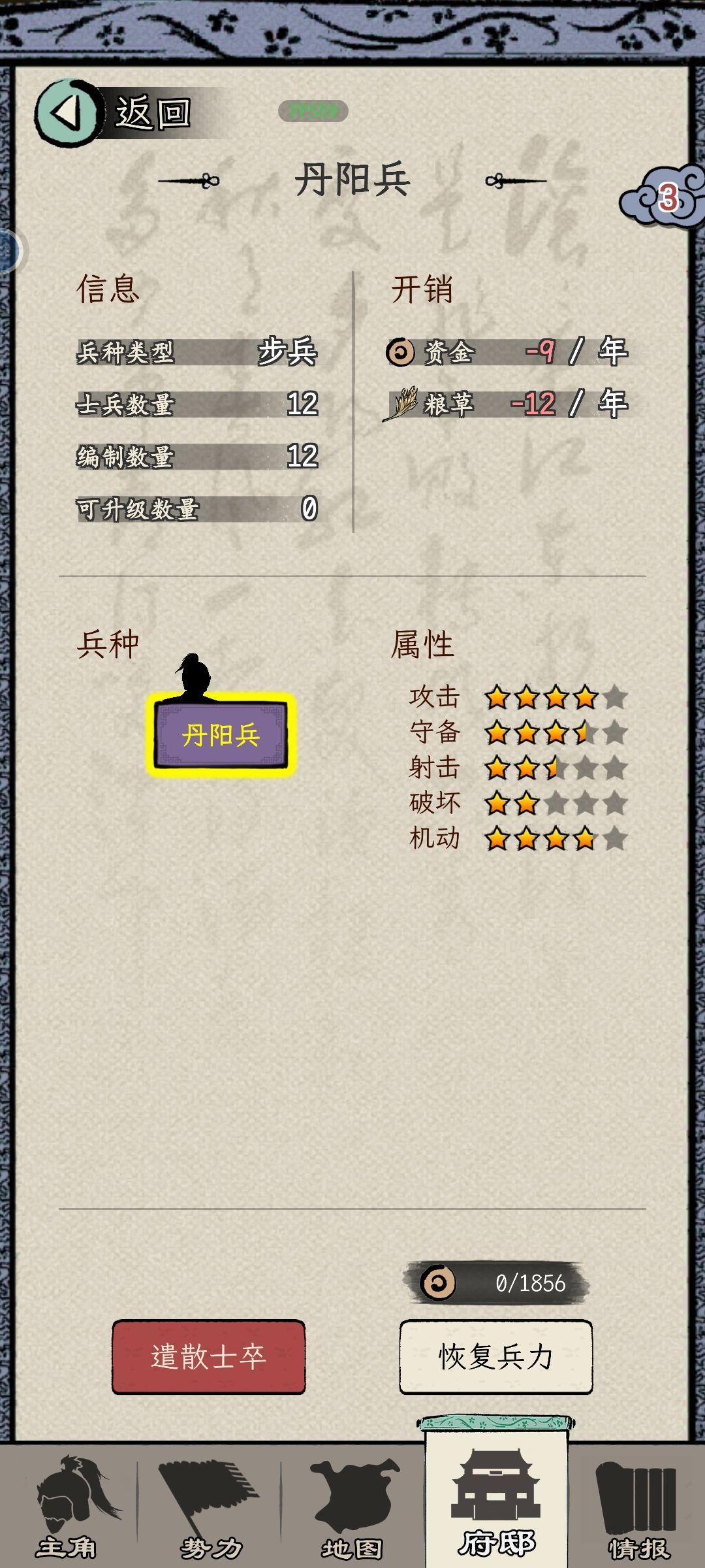 (3)当你的君主治理下有处于“战时”的城池,说明下一年初会扩张。建议看广告吃药💊叠属性,