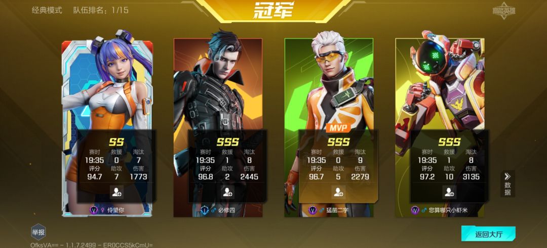 昨天遇到一队挂车,前三个还可以看到战绩,是真的6嗷觉醒哥是吧,(机器人看不到战绩)那个机器人坐着跳板就空中把队友融了,你无后坐是吧还是自瞄阿,这打的这么准,昨天举报了到现在都没反应到这再举报一下
