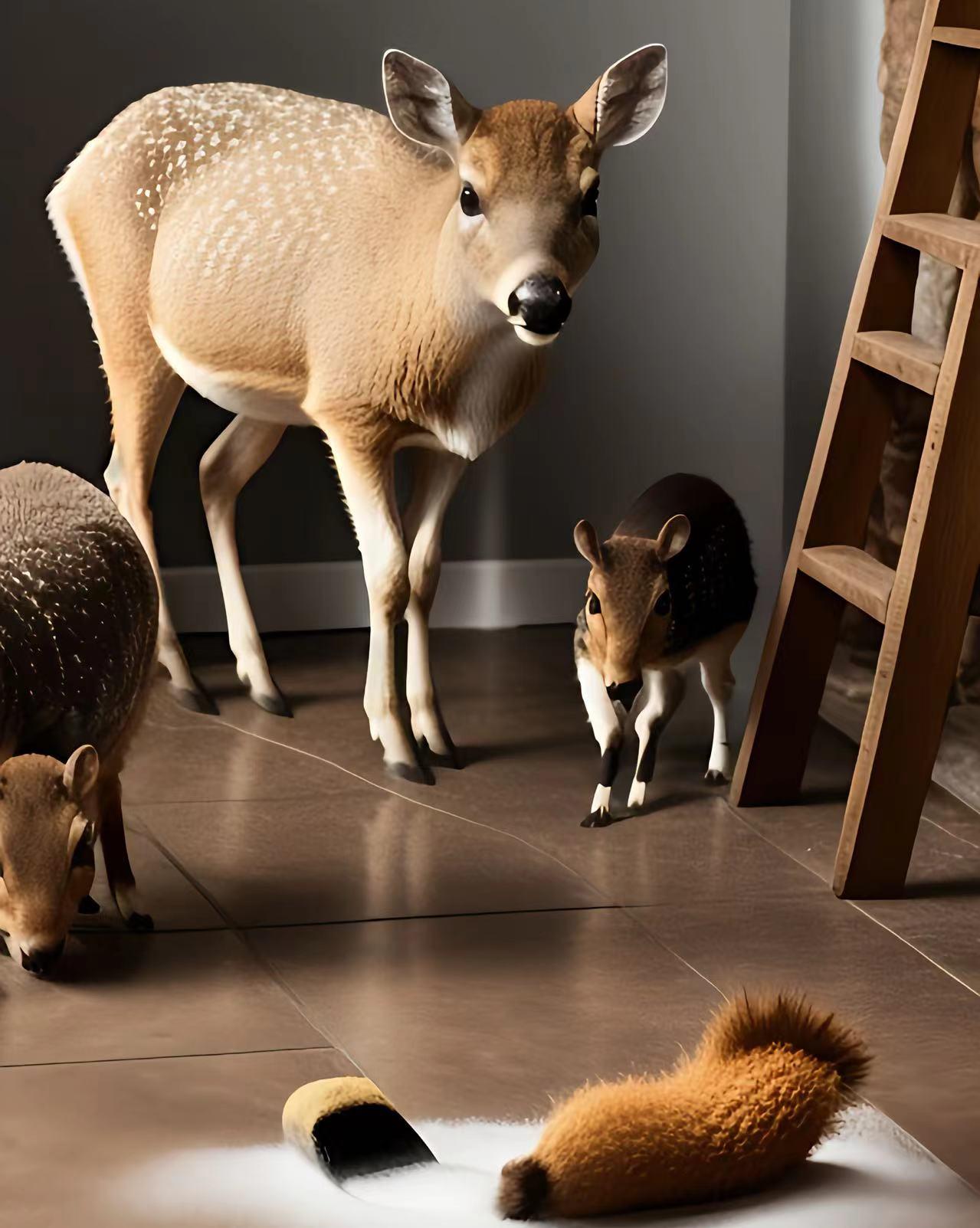 前有羊驼,再有洗地一只小松鼠,再有踏着翔而来的鹿!