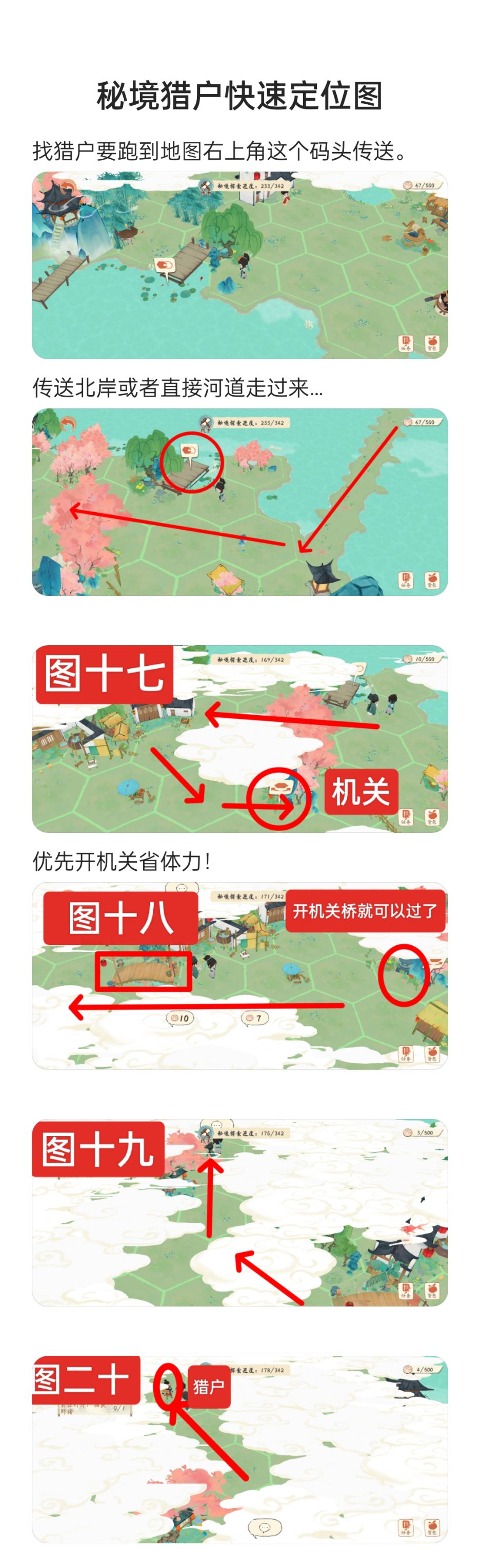 秘境里猎户不知道地方会浪费很多体力,其时猎户要去右下角地图找!参考图放出来了!
