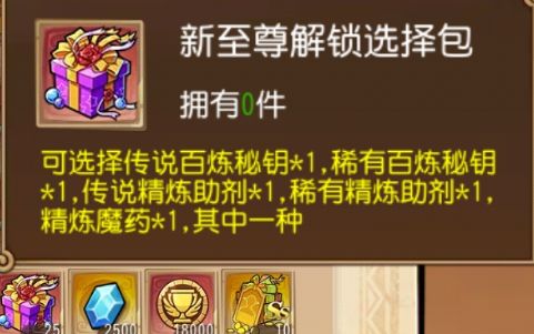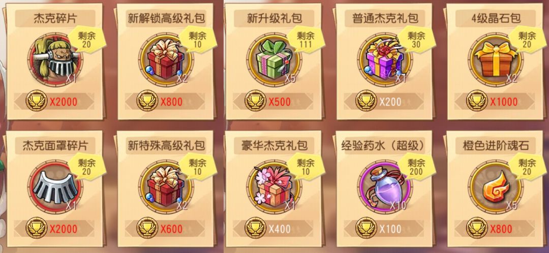 商城可兑换的选择也非常多,一般而言,笔者建议兑换新升级礼包,以开出各种精炼石、水晶为主,因为人物精炼对精炼材料的需求量非常巨大。如果你非常钟情于钻石的获取,也可以兑换两种杰克礼盒,可随机开出数量不等的钻石。