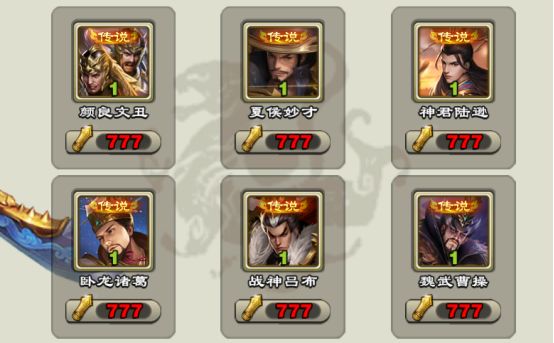 ①传说武将及金宝物及限定六星武将:传说武将也就是大家所说的777武将,会按照推出时间从上往下依次排列,基本财神活动前就可以规划好自己想换的传说武将了,毕竟777签子可不是小数目,武将强度在之前的新手攻略贴有描述过了,这里只说几个不推荐兑换的