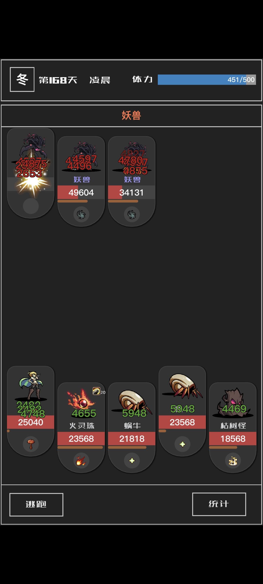 没想到啊,蜗牛在对战14图boss时还是会偶尔暴毙(莫名其妙,我这血量还有70%韧性为啥还暴毙,你该不会是百分比扣血吧),不过已经稳过的了。此配队输出占比火灵珠60%,猎人30%。