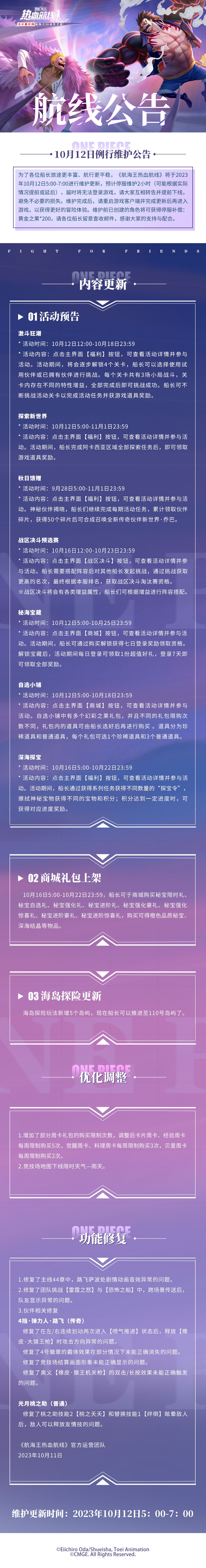 航海王热血航线10月12日例行维护公告
