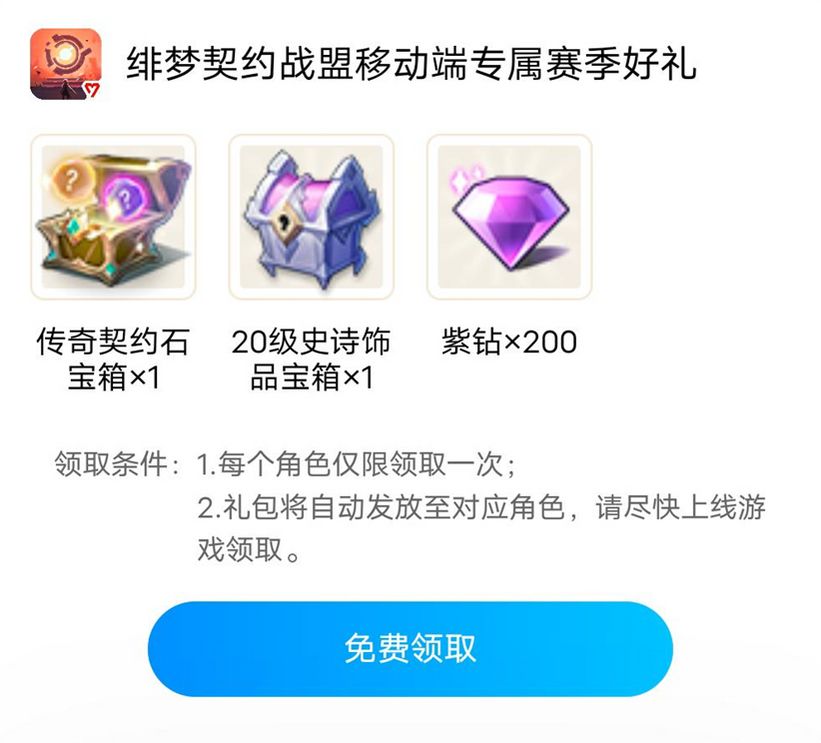 3)关注战盟app,领取战盟专属礼包,获得紫钻、传奇契约石宝箱、史诗饰品等丰富道具,助力冒险者更快成长!