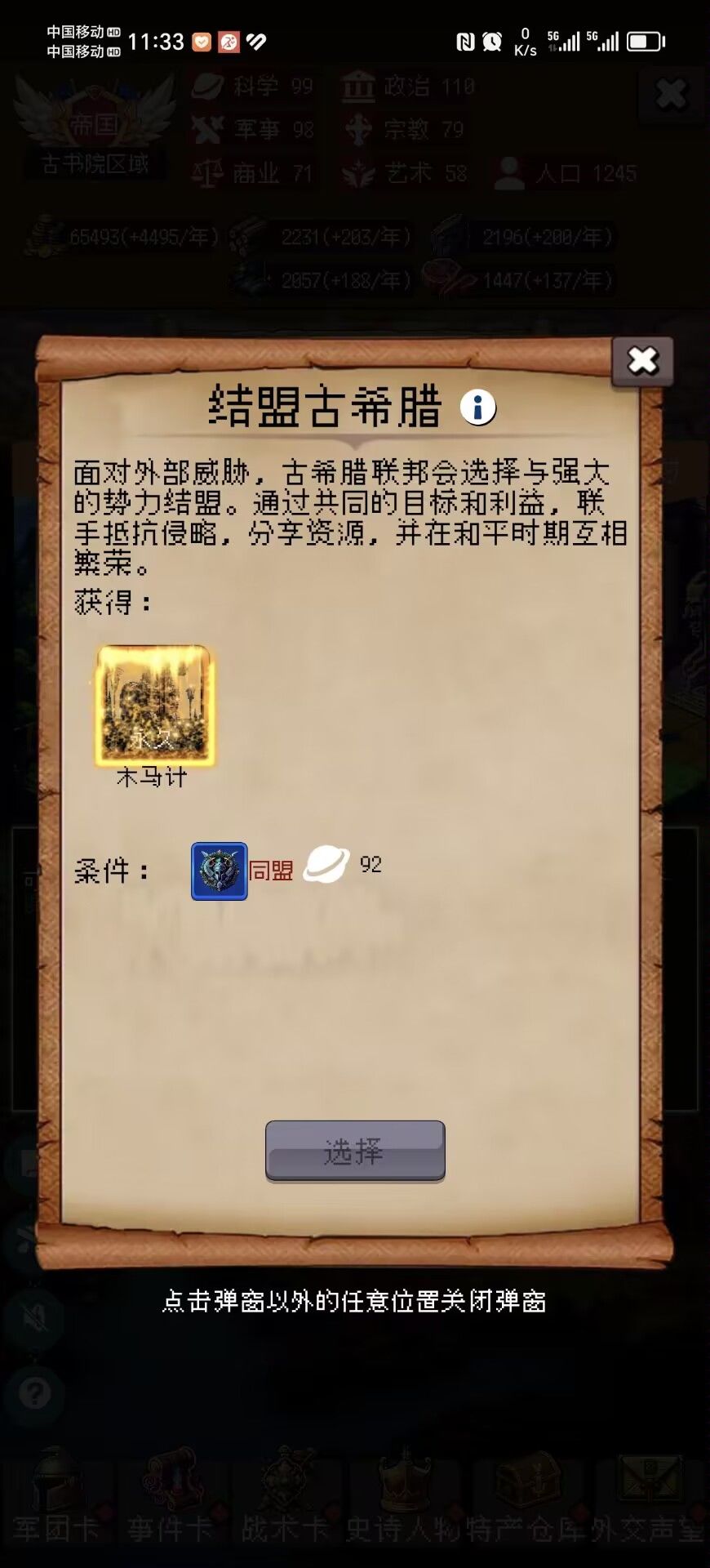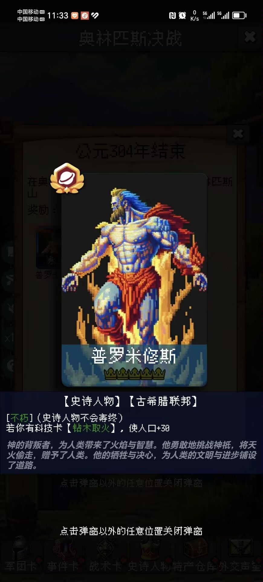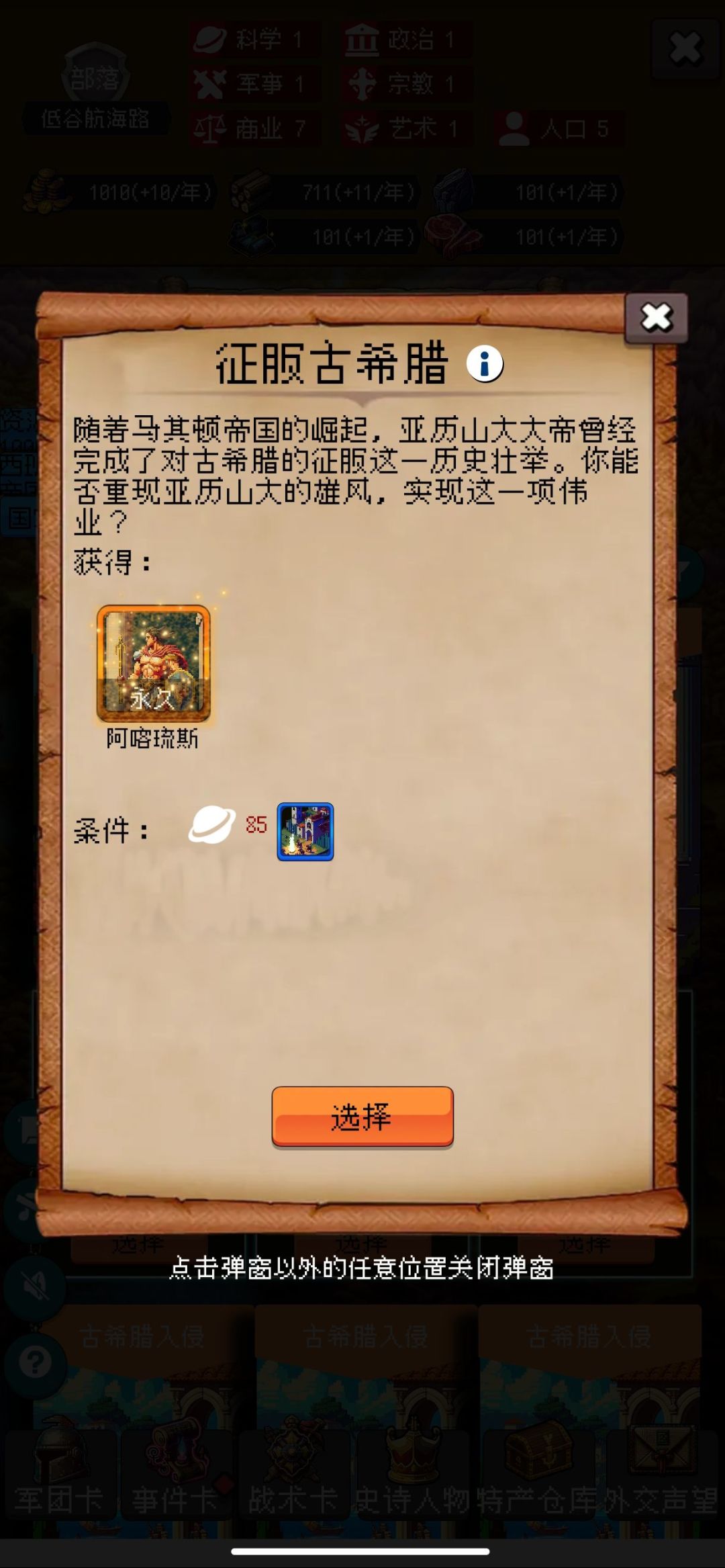 对局中尽量拿够充足的奖励,建立大量的奇观,这样可以帮助我们六维的提升,根据要求来选择成长型六维事件,因为年份靠后,所以更要利用好史诗人物的属性加成!