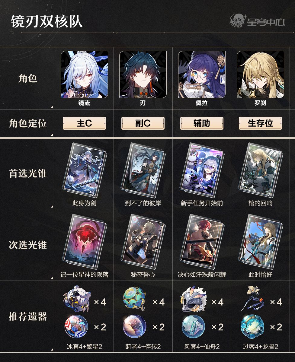 先直接上阵容推荐:镜流+佩拉+布洛妮娅/停云+罗刹/白露。