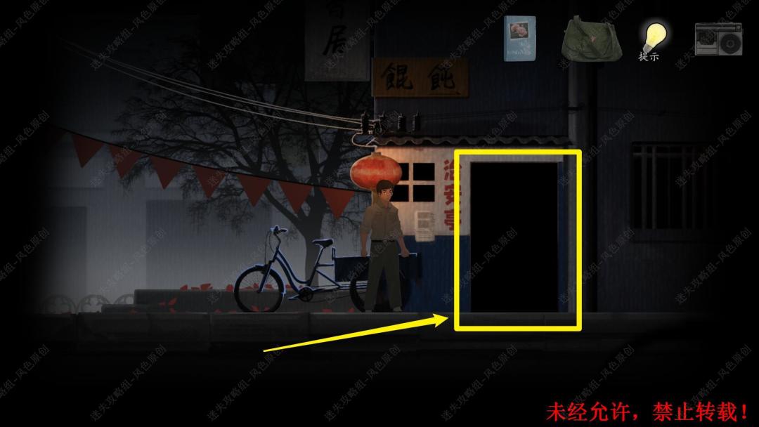 50.向右走,在图中位置,按照顺序向墙上使用【胶水】,【春联】和【404室门牌】。贴好之后,点击调查图中区域,触发404室的出现。 50 50.1